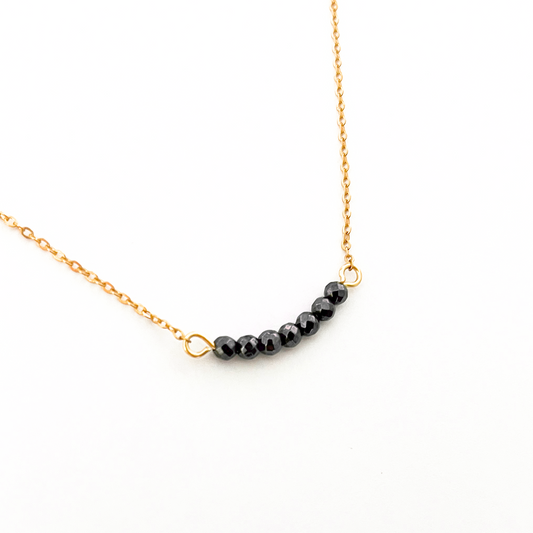 Discover our collection of hematite jewelry , a shiny black stone with protective and stabilizing properties. Hematite is recognized in lithotherapy for being the gem of anchoring and strength.
