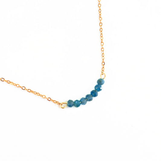 Dive into the world of communication with our beautiful blue apatite necklaces . In lithotherapy , this natural stone is known for its soothing and stimulating properties. It promotes self-expression, active listening, and creativity.