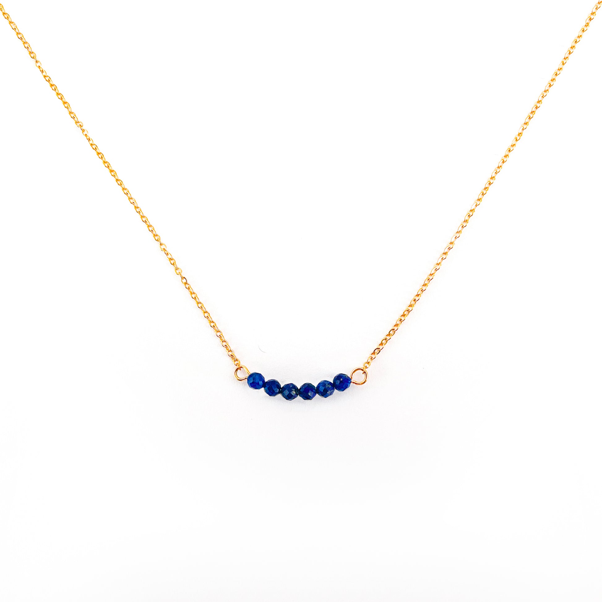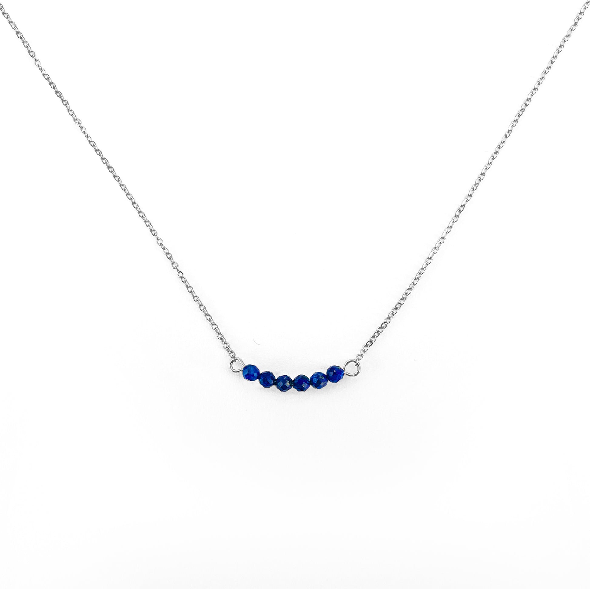 Le collier lapis lazuli est formé de 6 petites pierres naturelles d'environ 3 mm, elles sont montées sur une chaîne en acier inoxydable disponible en or ou en argent.✨